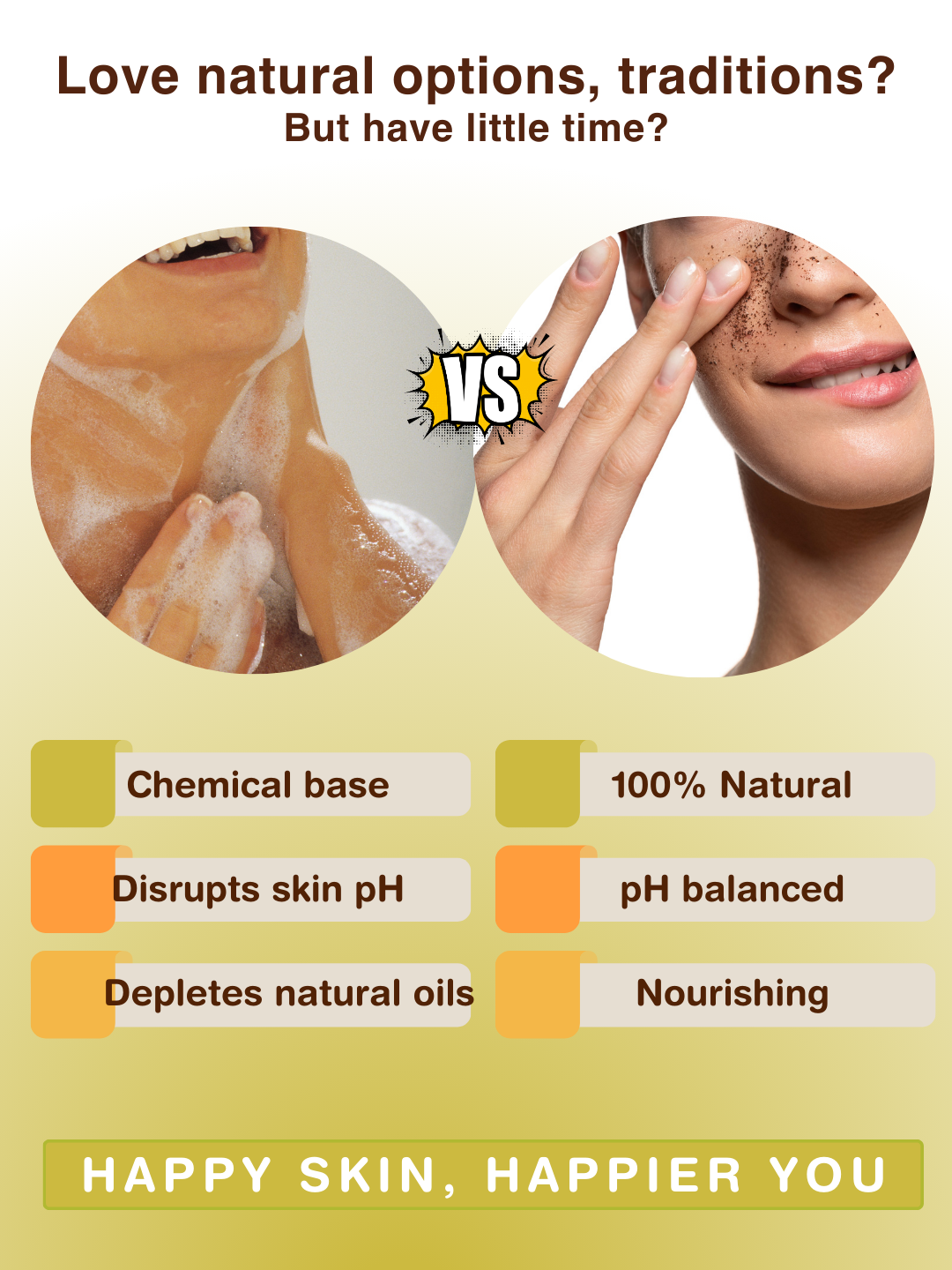 The scrub's combination of ingredients helps exfoliate and revitalize your skin. Turmeric extract provides antioxidant and anti-inflammatory benefits, while the cold-pressed oils and unrefined kokum butter help moisturize and nourish your skin. Regular use of this scrub can improve skin texture, promote a healthy complexion, and enhance the absorption of other skincare products.