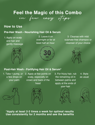The combo works in two steps—nourishing and strengthening the scalp pre-wash, and stimulating regrowth post-wash with targeted Ayurvedic ingredients.
