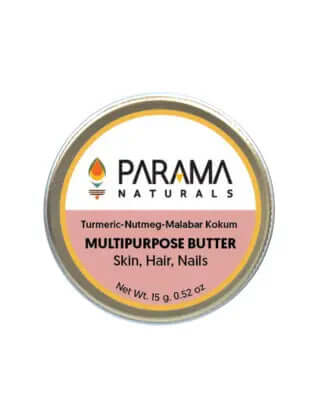 A luxurious fusion of natural ingredients meticulously crafted to nourish, soften, and transform your skin, hair, and nails. This versatile butter, enriched with the goodness of Kokum and Nutmeg Butters, along with a blend of Neem, Turmeric, Rosemary, Peppermint, Castor, Coconut, and Sesame Oils. It is your go-to solution for a holistic beauty experience. It butter is recommended for hydrating dry skin on the face as well as body. Can also be used for softening and smoothening chapped lips and grooming frizzy hair and beard, making it suitable for all ages and genders. This compact and convenient butter is an ideal on-the-go companion, delivering instant hydration and care.
