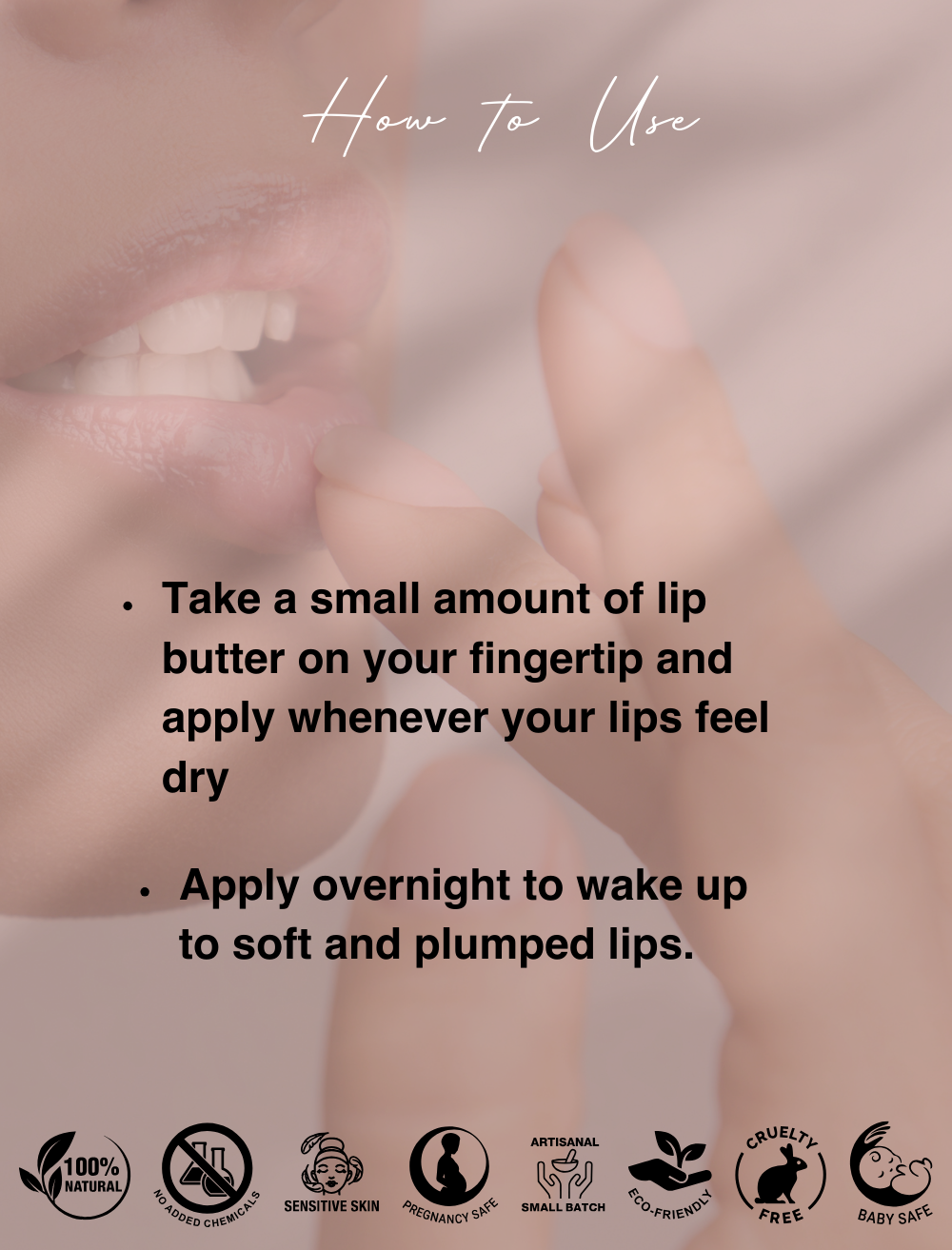 Apply a small amount of Lip Balm to clean lips, spread evenly, and massage gently for soft, hydrated lips. Use throughout the day and as an overnight treatment for optimal results.