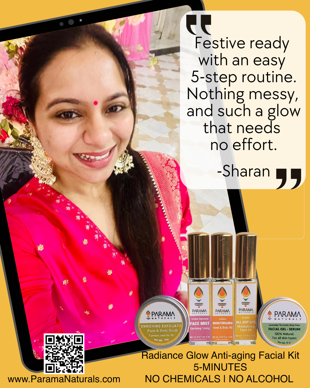 The Parama Naturals' Radiant Glow Facial Kit includes: