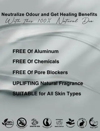 Harnessing the natural deodorizing, antifungal, antibacterial and anti-inflammatory properties of neem, turmeric and peppermint essential oils, this unique formulation is gentle on the skin while it prevents and neutralizes odour even in sensitive intimate areas. Non-comedogenic and pore-friendly, our deodorant suits all skin types, promoting breathability and natural perspiration, while preventing breakouts. With NO CHEMICALS, NO